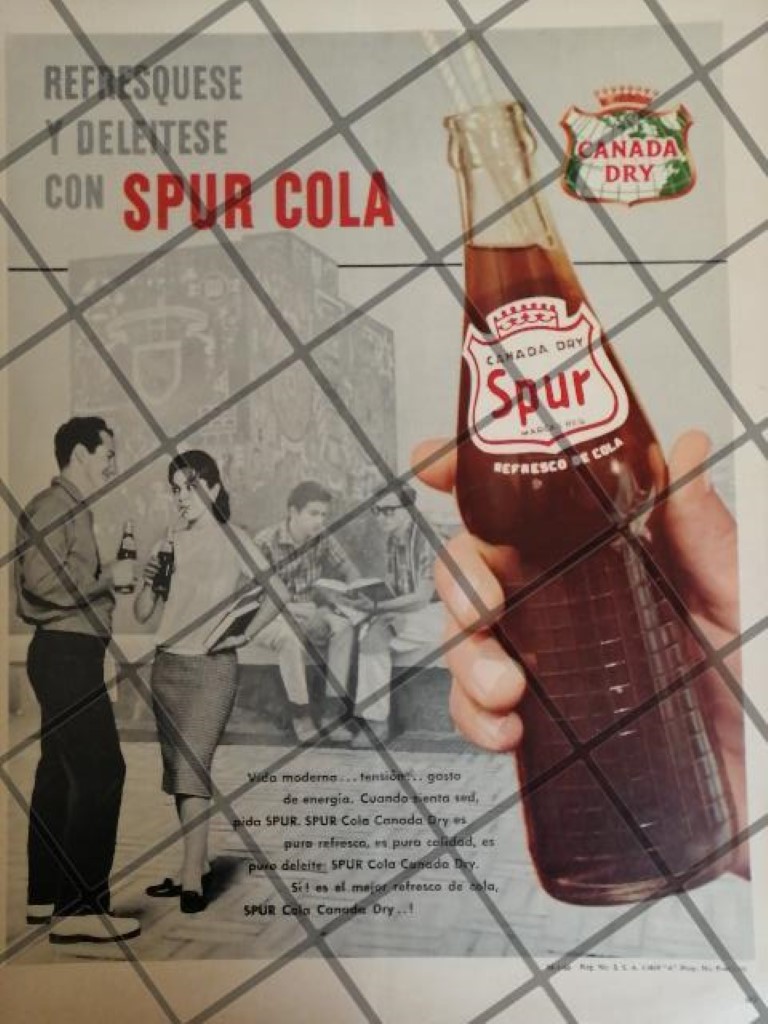 CARTEL VINTAGE ORIGINAL REFRESCOS SPUR BIBLIOTECA UNAM 1960