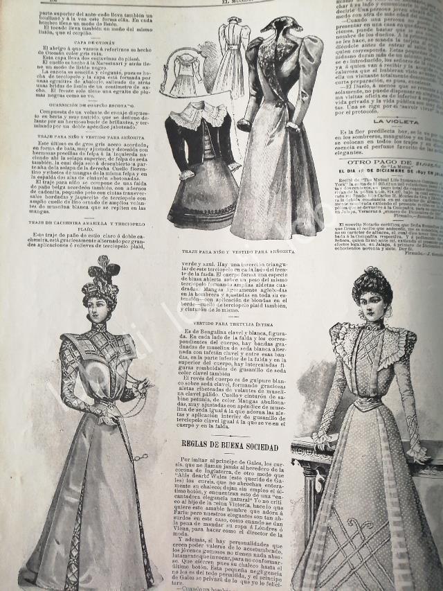 Este tipo de gacetas, no solo son atractivaspor su antiguedad, sino por su exquisito ydetallado Arte, las cuales eran dibujadas amano y muchas del natural, piezas que hoy en dia son apreciadas y dignas de anmarcar.FICHA TECNICA:.- Material: Papel.- Original.- Medidas: 36 x 27 Cms.- 2 Hojas.- Condiciones: Mire la imagen.- No incluye marco.- L.I. ELMNDOILST-L7/1898/T1.- No es una revistaNOTAS:Referencias:.- Modas antiguas.- Grabados de moda antigua.- Gacetas de modas antiguas.- Revistas de moda antigua