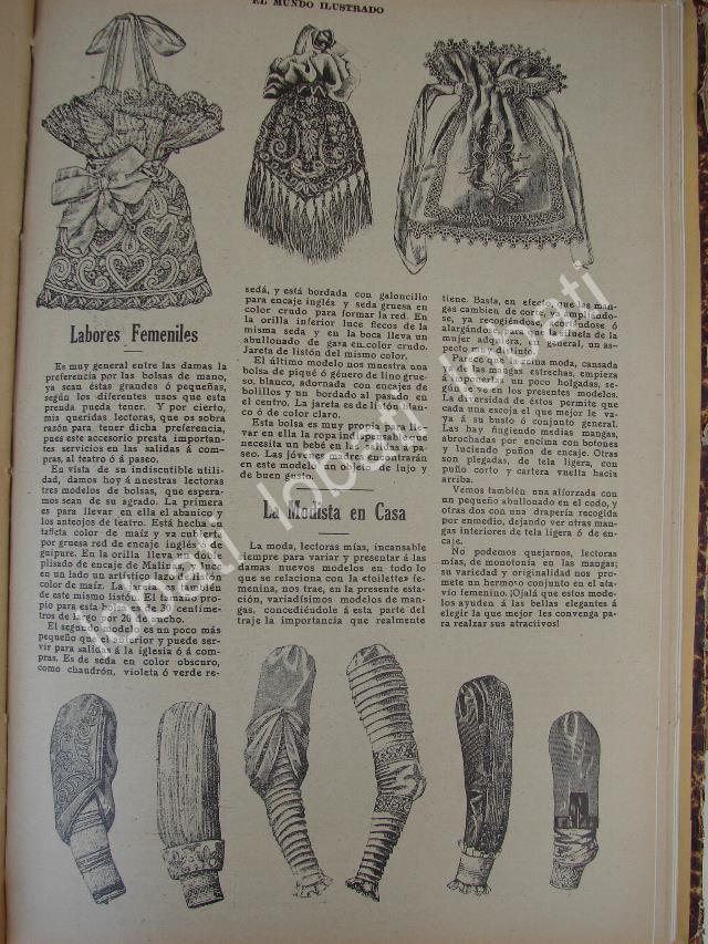 Una Gaceta que salio en el semanario el Mundoy abordaba temas como Modas, Buenas maneras yetiqueta, belleza etc.Este tipo de gacetas, no solo son atractivaspor su antiguedad.., sino por su exquisito ydetallado Arte, las cuales eran dibujadas amano y muchas del natural…, piezas que hoy en dia son apreciadas y dignas de anmarcar.FICHA TECNICA:.- Material: Papel.- Original.- Medidas: 17 X 27 Cms +-.- 3 Hojas.- Condiciones: Mire la imagen.- No incluye marco.- L.I. ELMNDOILST 1910/T1NOTAS:Referencias:.- Modas antiguas.- Grabados de moda antigua.- Gacetas de modas antiguas.- Revistas de moda antigua.- Revistas antiguas de modas