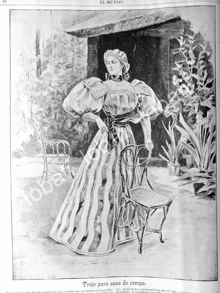 GRABADO ANTIGUO 1895 TRAJE PARA CAMPO / MODAS ANTIGUAS /10