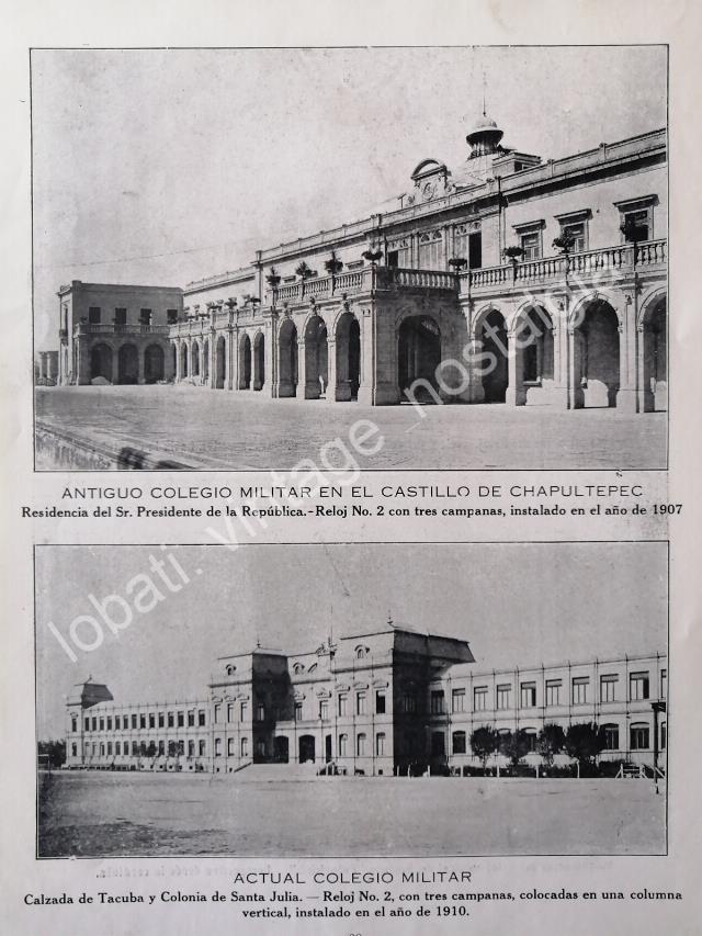 GRABADO ANTIGUO COLEGIOS MILITARES Y SUS RELOJES 1924