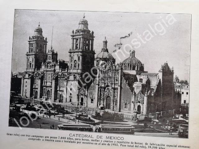 GRABADO ANTIGUO JOYERIA LA PERLA Y CATEDRAL 1924