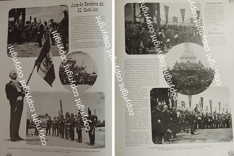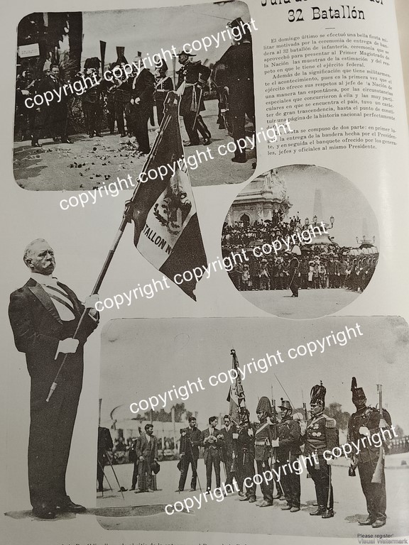 HOJA DE PRENSA ANTIGUA 1911 PRESIDENTE Y JURA DE BANDERA DEL BATALLON 32 /MILITARIA