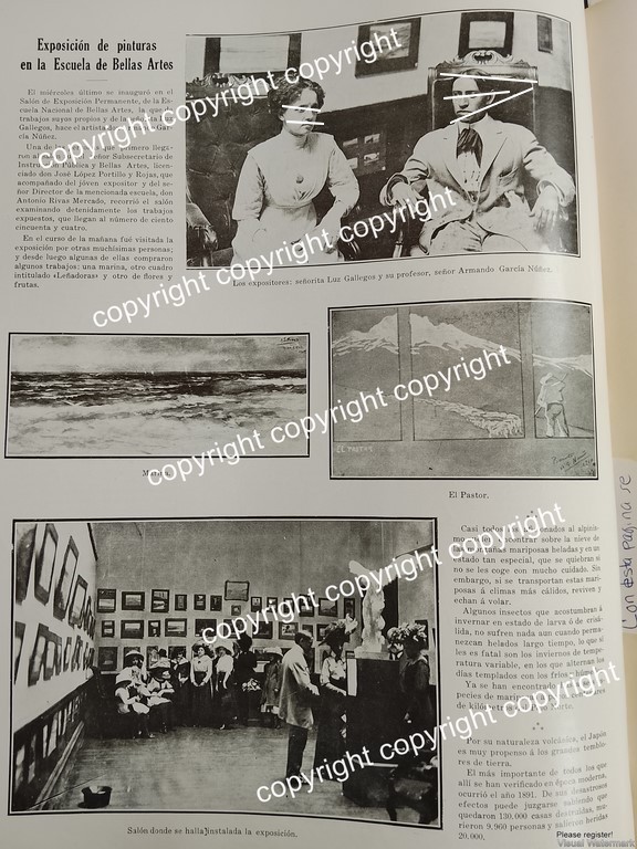 HOJA DE PRENSA VINTAGE 1911 EXPOSICION DE LOS PINTORES ARMANDO GARCIA NUÑEZ Y LUZ GALLEGOS