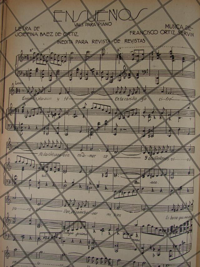 PARTITURA ANTIGUA INEDITA 1936 POR: FRANCISCO ORTIZ SERVIN / ENSUEÑOS
