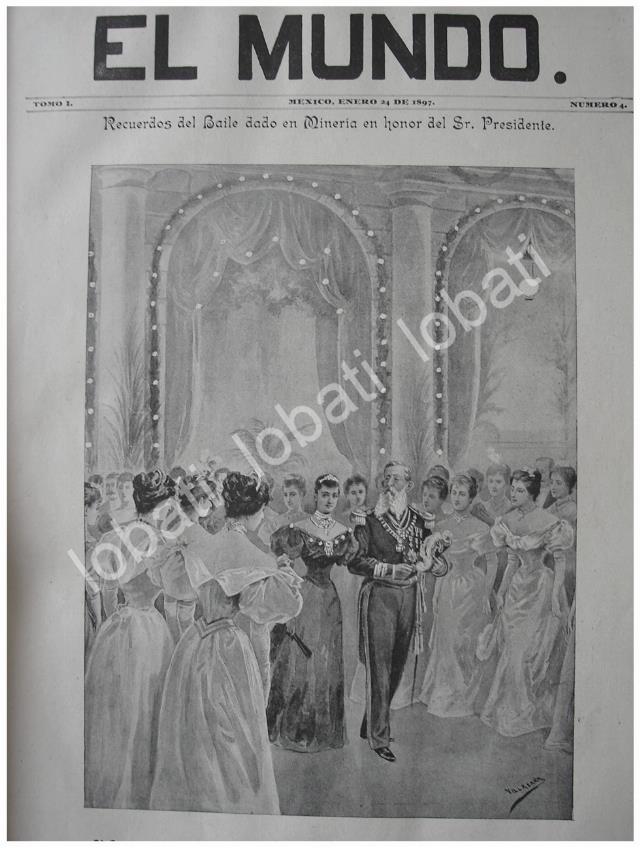 Del baile en el palacio de Mineria que se llevo acabo en enero de 1897, y quefue en honor a Porfirio Diaz y Esposa.el dibujo fue de Jose Maria VillasanaFICHA TECNICA:.- Material: Papel.- Original.- Medidas: 36 X 27 Cms.- Condiciones: Mire la imagen.- No incluye marco.- L.I. ELMNDOILST/L4/1897/T1.- No es una revista NOTAS:.- Portadas antiguas originales.- Portadas historicasMilitaria