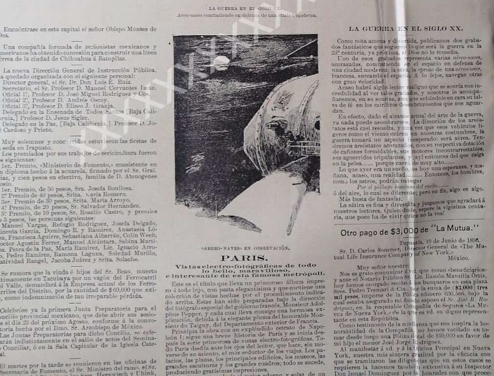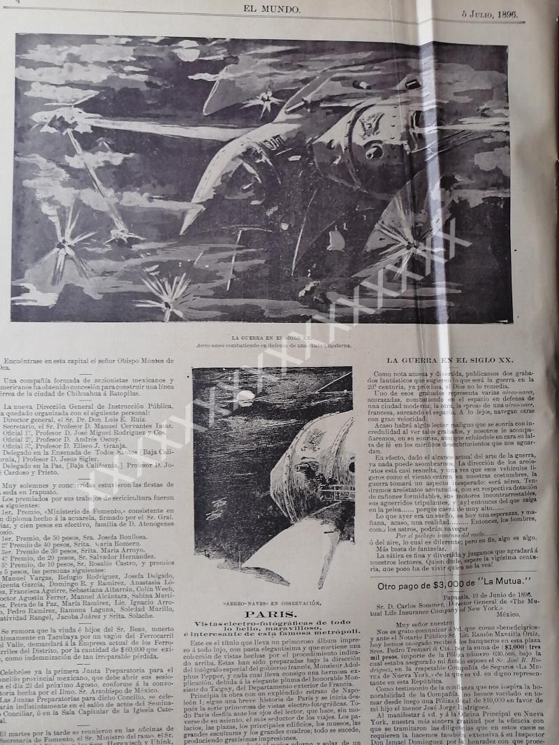 Que es lo que estamos ofreciendo !…Nota de prensa , afiche o grabadooriginal de esa epoca.FICHA TECNICA:Una pieza diga de enmarcar, aqui en este diariode 1896 se hace un pequeño reportaje de lo queseran las guerras espaciales entre humanos y yamuestran lo que consideran naves espaciales..- Material: Papel.- Original:.- Hojas: 1.- Medidas: 36 x 26 Cms.- Condiciones: Mire la imagen.- No incluye marco.- L.I. LBRP-002.- No es una revista.- Contiene otras notas.- tIENE UN DOBLEZ QUE NO AFECTA SU APRECIACIONReferencias:.- Historiografia antigua.- Notas de prensa antigua.- Recortes de periodicos Mexicanos.- Notas periodisticas antiguas.- Tienda de Historiografia antigua