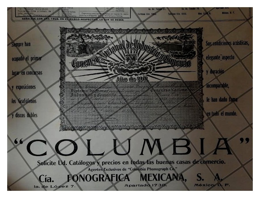 Que es lo que estamos ofreciendo !! Afiche publicitario antiguo original . FICHA TECNICA. 1912 .- Fonografos Columbia . .- Material: Papel .- Original: Si .- Hojas: 1 .- Medidas: 35 x 17 Cms +- .- Condiciones: Mire la imagen .- No incluye marco .- L.I. REVDEREV-1912-T1 .- No es una revista. .- Contiene otras notas .- Las hojas originales no tienen marcas de cuadricula ni leyendas . Referencias: . .- Publicidad antigua .- Publicidad retro Mexicana .- Recortes de periodicos Mexicanos .- Periodicos antiguos Mexicanos .- Mexico antiguo. .- Carteles publicitarios antiguos