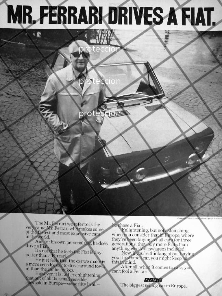 RARISIMO CARTEL RETRO ENZO FERRARI Y AUTOS FIAT 1971